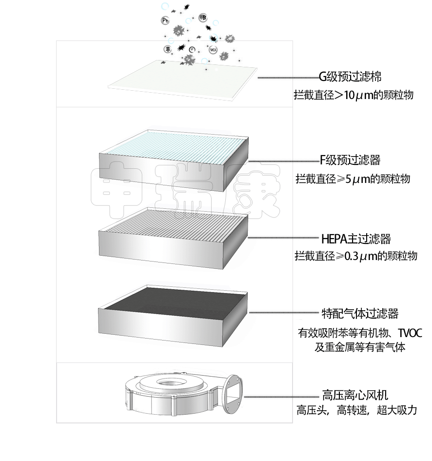 塵廢氣中有害的化學(xué)性氣體進(jìn)行有效的吸附。