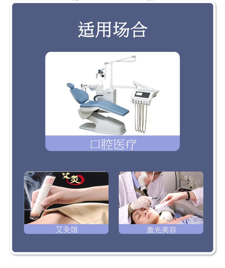 適用場(chǎng)合:醫(yī)療美容、艾灸、口腔氣霧、實(shí)驗(yàn)室等煙塵凈化。