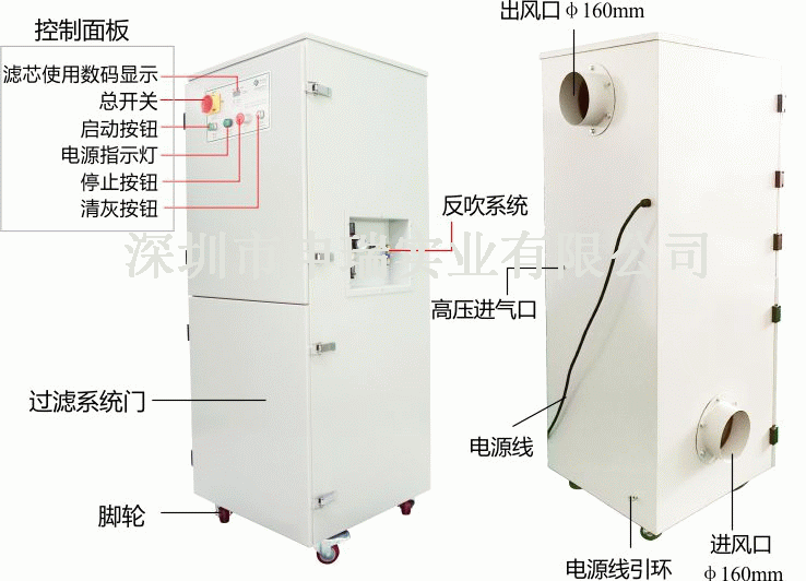 四、配置防爆凈化設(shè)備 申瑞深耕工業(yè)廢氣處理20年,研發(fā)的一款可以用于易燃、易爆粉塵場所的煙塵、粉塵凈化專用煙塵凈化器。該設(shè)備通過了粉塵防爆認(rèn)證,適合易燃、易爆粉塵場所的空氣凈化。具有風(fēng)量大、負(fù)壓高、自動化程度高、穩(wěn)定可靠、節(jié)能、占地面積小、使用方便等一系列優(yōu)點(diǎn),能滿足一般清潔生產(chǎn)要求和一些特殊工況要求,能直接吸收其它機(jī)器或者特殊作業(yè)過程中產(chǎn)生的金屬大顆粒物和粉塵、煙霧、碎屑等。適用于激光打標(biāo)大面積金屬和非金屬材料、電焊、機(jī)械磨床、手工打磨、研磨、噴砂、攪拌、切削、袋裝、有機(jī)玻璃加工、震動篩網(wǎng)、空氣輸送、包裝等作業(yè)的煙塵、粉塵收集凈化。該設(shè)備特別適合于鋁合金鎂合金打磨、面粉加工廠、家具廠等產(chǎn)生的易燃易爆粉塵場所。